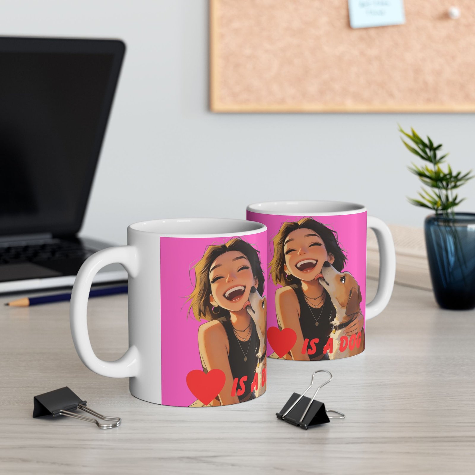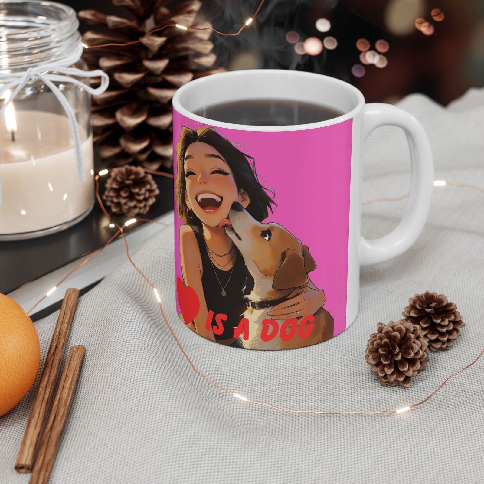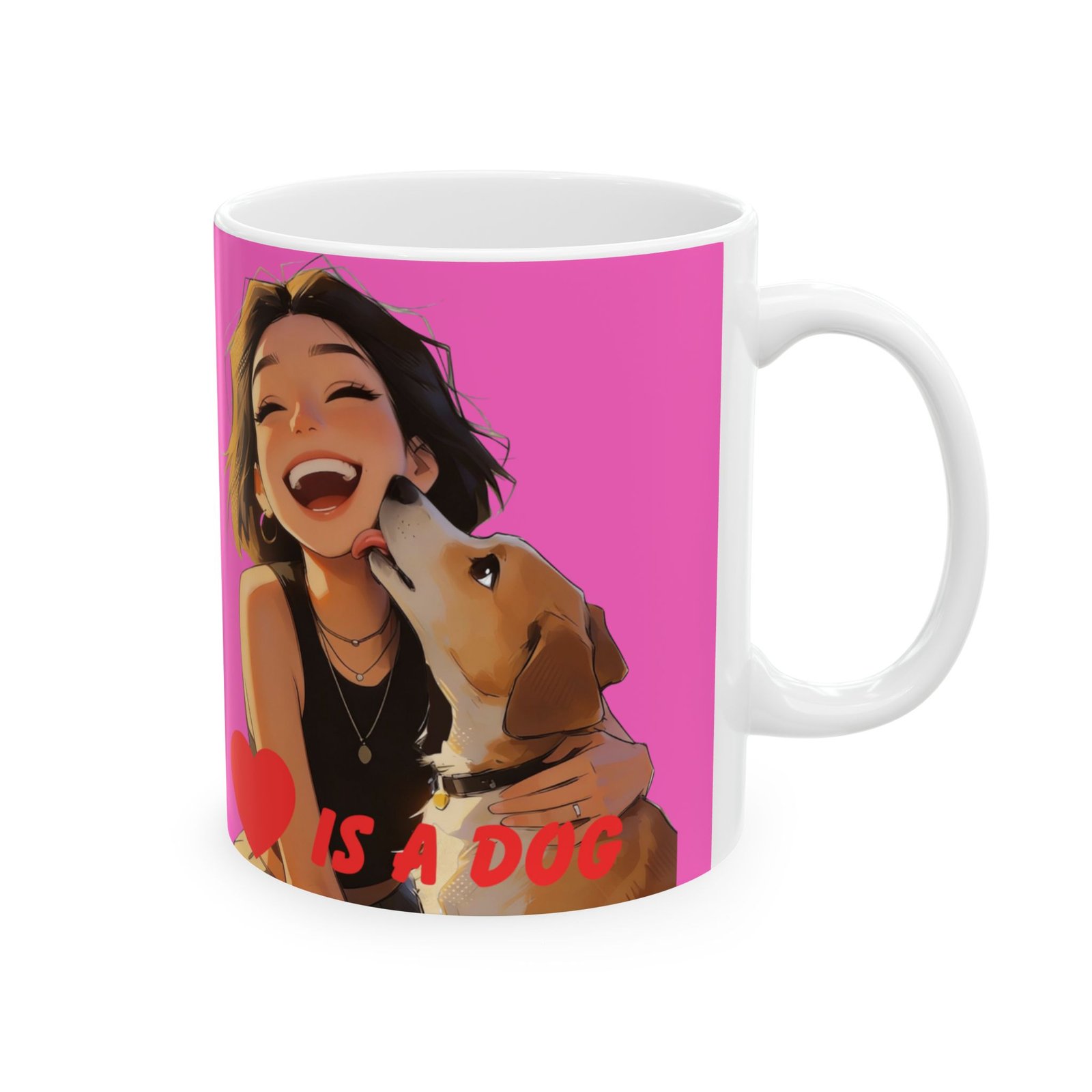 A bright, glossy ceramic mug that brings a burst of joy to every morning. The vivid wraparound artwork features warm, playful characters and a cheerful hot-pink background that feels like a hug in your hand. Lightweight yet sturdy, the mug’s comfortable C-handle and smooth shiny finish make it easy to drink from every day. Choose 11oz for a classic coffee portion or 15oz when you need a little extra. Microwave- and dishwasher-safe, and made from lead- and BPA-free white ceramic, this mug is built for everyday use while keeping the colors popping through countless sips and washes.